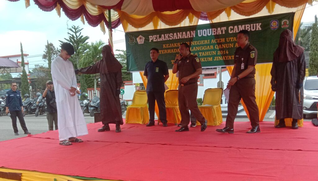 Saat dilakukan eksekusi turut di saksikan Kapolres Aceh Utara, Ketua Mahkamah Syar’iyah Aceh Utara, Ketua Pengadilan Aceh Utara, Kepala satpol PP dan WH Aceh Utara dan undangan lainnya serta masyarakat