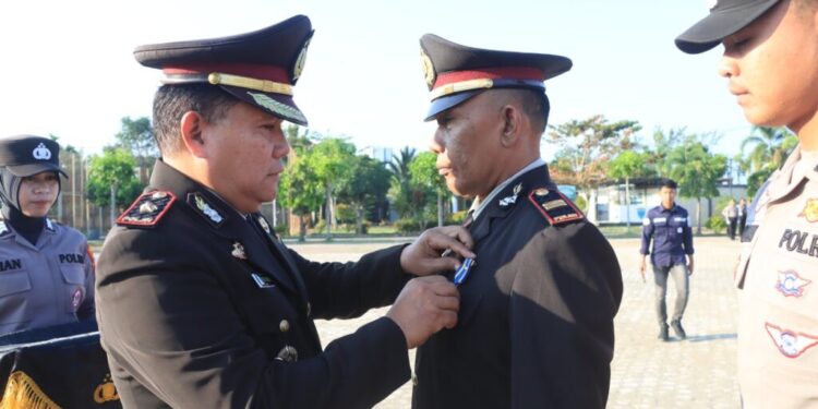 ACEH UTARA – Mewakili Presiden RI, Wakapolres Aceh Utara Kompol Ichsan Pradita, S.E., menyematkan tanda kehormatan Satyalencana Pengabdian kepada 17 personel berprestasi dalam upacara khidmat di Mapolres, Selasa (27/1/2026).