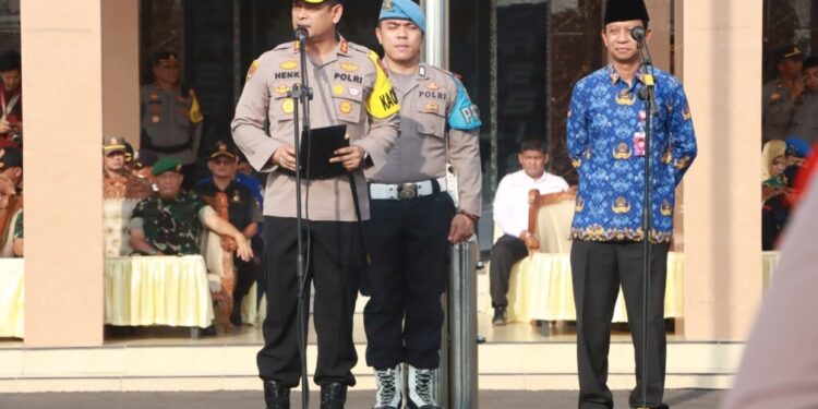 Kapolres Lhokseumawe pimpin upacara apel gelar operasi ketupat seulawah tahun 2023 yang berlangsung di halaman Mapolres Lhokseumawe, senin (17/04/2023) pagi.