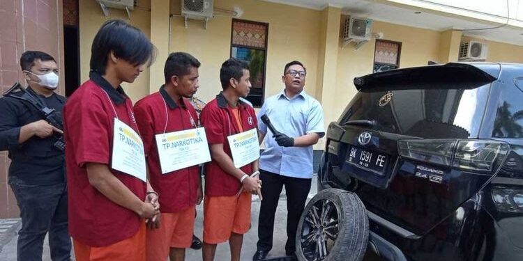 Dari informasi tersebut petugas melakukan penyelidikan dan menghentikan ketiganya yang sedang mengemudikan satu unit mobil jenis Innova dengan plat nomor BK 1591 FE.