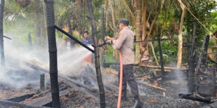 Kandang Lembu Ludes Terbakar di Muara Batu, Polisi Bantu Padamkan Api