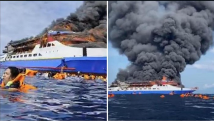 Saat kapal terbakar, para penumpang masih sempat mengenakan live jacket. Lalu melompat ke laut.