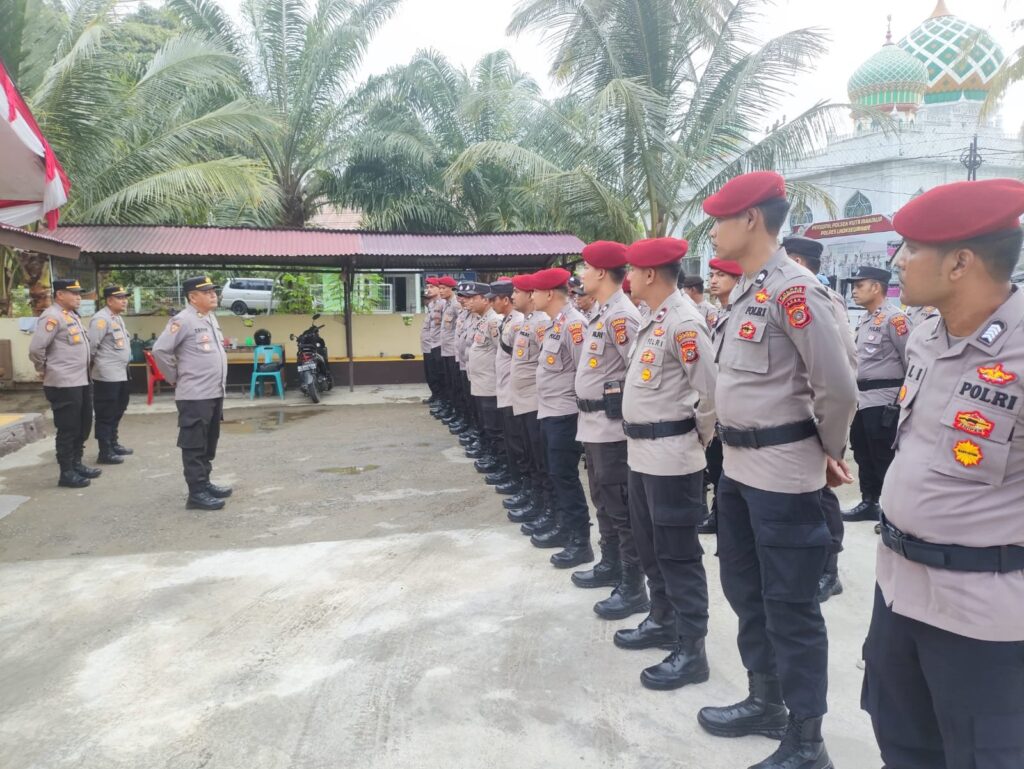 LHOKSEUMAWE – AKP Erpansyah pimpim Apel Kesiapan Personel gabungan dalam rangka pengamanan Tempat Pemungutan Suara (TPS) di Zona Timur, wilayah hukum Polres Lhokseumawe, Senin (12/2/2024).
