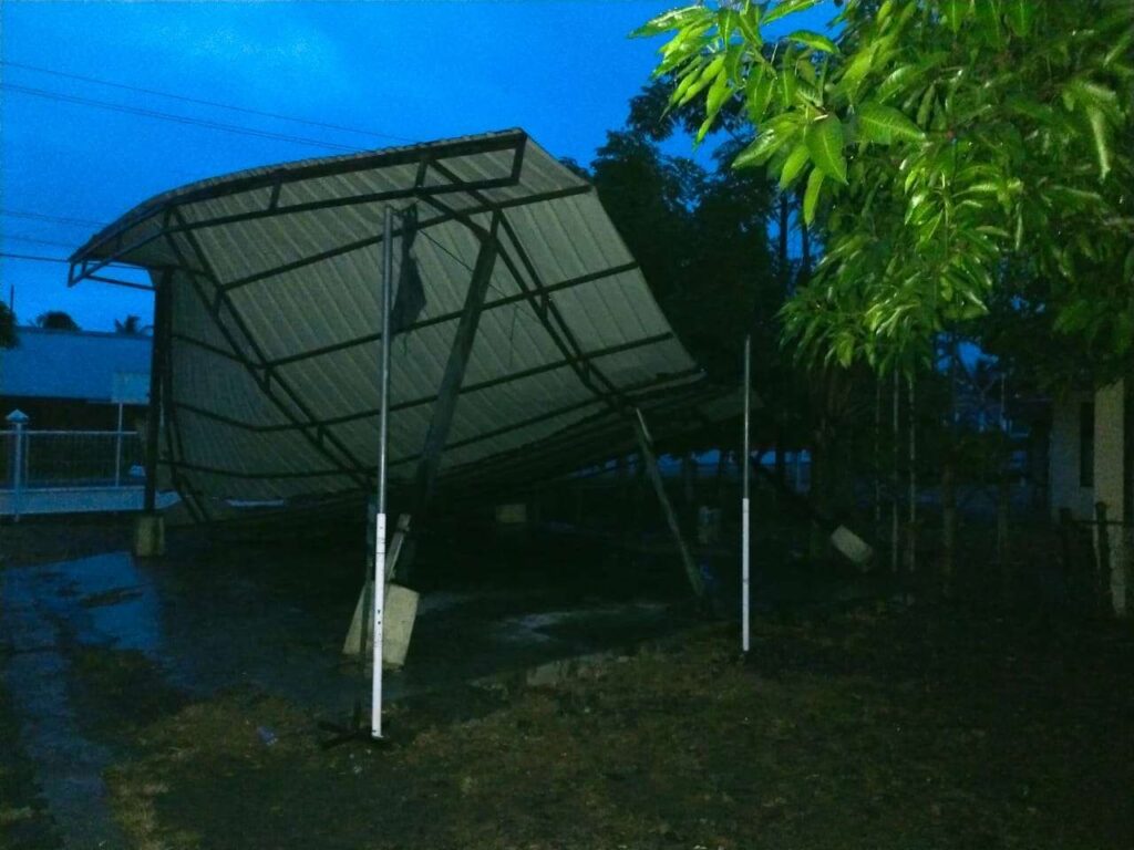 Banda Aceh – Akibat hujan dan angin kencang yang melanda wilayah Aceh Besar, mengakibatkan rusaknya bangun parkiran Puskesmas Kecamatan Lhoong, Aceh Besar, Sabtu (2/8/2025) jelang malam. Kejadian tersebut terjadi sekitar pukul 19.00 WIB, saat warga sekitar akan melaksanakan Shalat Magrib.