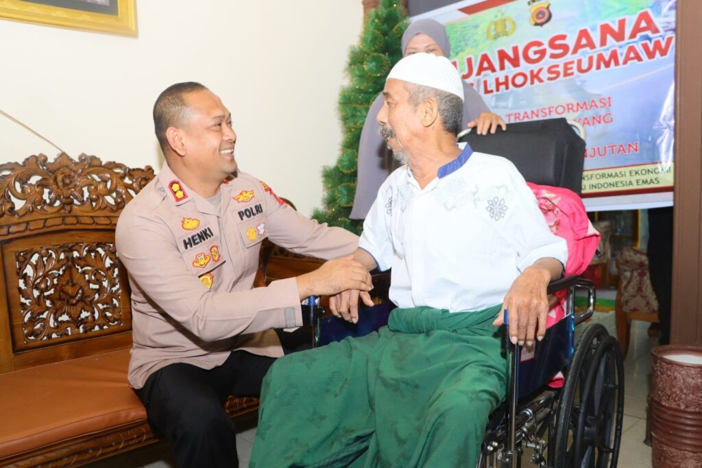 LHOKSEUMAWE – Kapolres Lhokseumawe AKBP Henki Ismanto, S.I.K bersama Ketua Bhayangkari Cabang Lhokseumawe Ny Resty Henki melakukan anjangsana ke rumah purnawirawan Polri dan warakawuri dalam rangka peringatan hari Bhayangkara ke 78, rabu (26/6/2024).