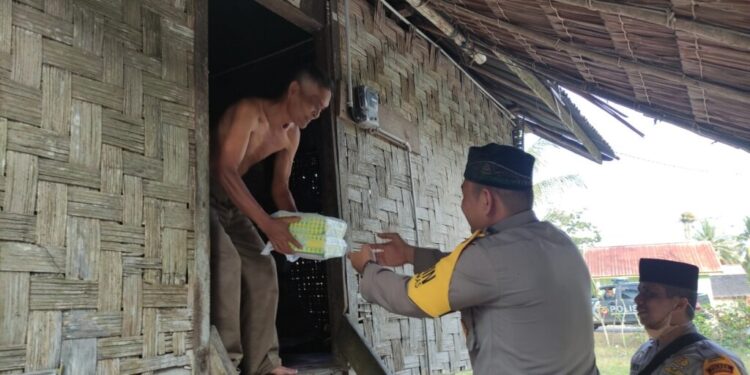 LHOKSEUMAWE – Anjangsana Ramadhan, Kapolsek Kuta Makmur, Iptu Slamet Rezeki bersama pesonel membagikan 50 nasi kotak kepada warga kurang mampu dan anak yatim di Kecamatan Kuta Makmur, Aceh Utara, wilayah hukum Polres Lhokseumawe, Kamis (13/4/2023).