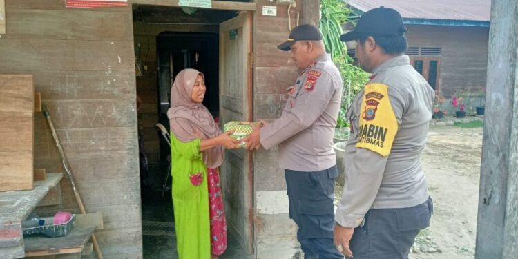LHOKSEUMAWE – Kapolsek Sawang, Iptu Ade Candra, SH bersama personel membagikan 40 nasi kotak kepada anak yatim dan warga kurang mampu di Kecamatan Sawang, Aceh Utara, wilayah hukum Polres Lhokseumawe, Rabu (5/4/2023), kegiatan tersebut dilaksanakan menjelang waktu berbuka puasa.