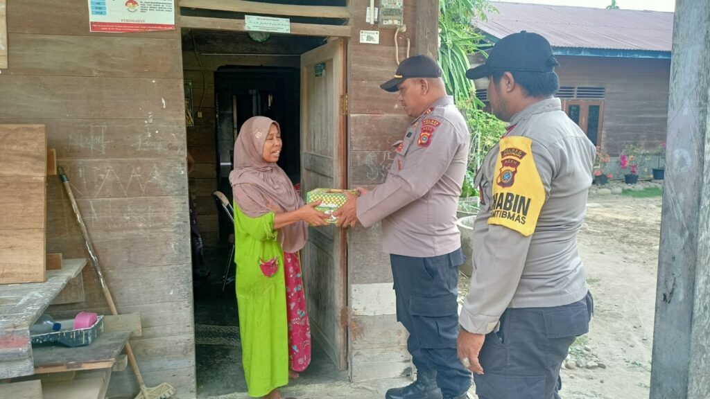 LHOKSEUMAWE – Kapolsek Sawang, Iptu Ade Candra, SH bersama personel membagikan 40 nasi kotak kepada anak yatim dan warga kurang mampu di Kecamatan Sawang, Aceh Utara, wilayah hukum Polres Lhokseumawe, Rabu (5/4/2023), kegiatan tersebut dilaksanakan menjelang waktu berbuka puasa.