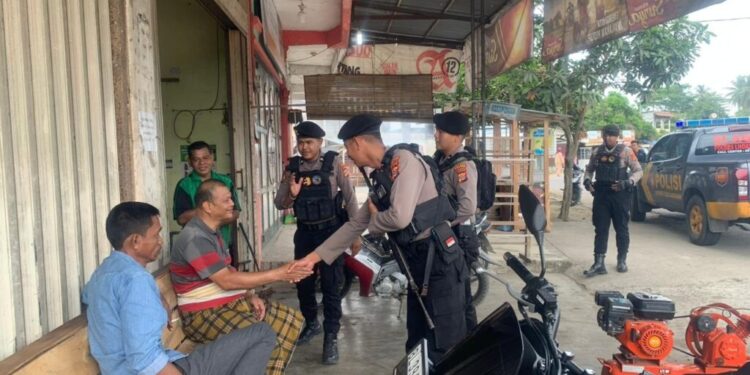 LHOKSEUMAWE – Patroli antisipasi gangguan Kamtibmas dan premanisme, Tim Unit Reaksi Cepat (URC) Sat Samapta Polres Lhokseumawe menyambagi pedagang di wilayah hukum Polres Lhokseumawe, Sabtu (29/4/2023).