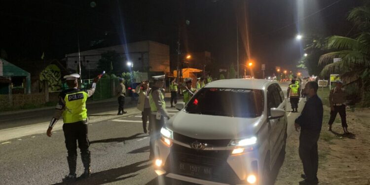 LHOKSEUMAWE – Guna mengantisipasi gangguan Kamtibmas menjelang Pemilu 2024, Personel Polres Lhokseumawe menggelar razia di jalan lintas Medan – Banda Aceh di depan terminal bus Kandang, Kecamatan Muara Dua, Kota Lhokseumawe, Jumat (27/10/2023) Malam.