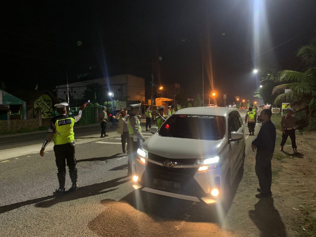 LHOKSEUMAWE – Guna mengantisipasi gangguan Kamtibmas menjelang Pemilu 2024, Personel Polres Lhokseumawe menggelar razia di jalan lintas Medan – Banda Aceh di depan terminal bus Kandang, Kecamatan Muara Dua, Kota Lhokseumawe, Jumat (27/10/2023) Malam.