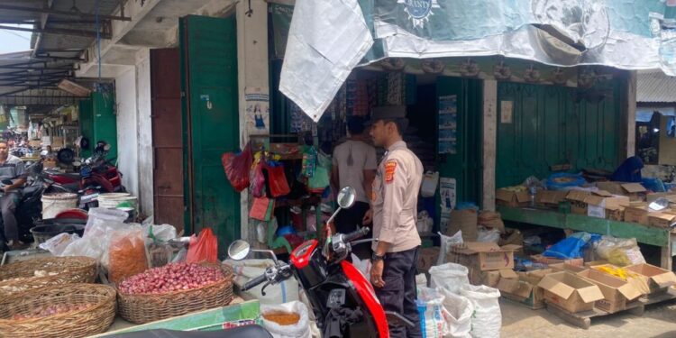 Aceh Utara – Personel Polsek Dewantara melaksanakan patroli rutin antisipasi gangguan Keamanan dan ketertiban masyarakat ( Guantibmas) dan aksi premanisme di pasar tradisional Keude Krueng Geukueh, Kecamatan Dewantara, Kab. Aceh Utara, Provinsi Aceh, Wilayah hukum Polres Lhokseumawe, selasa (24/9/2024) pagi.
