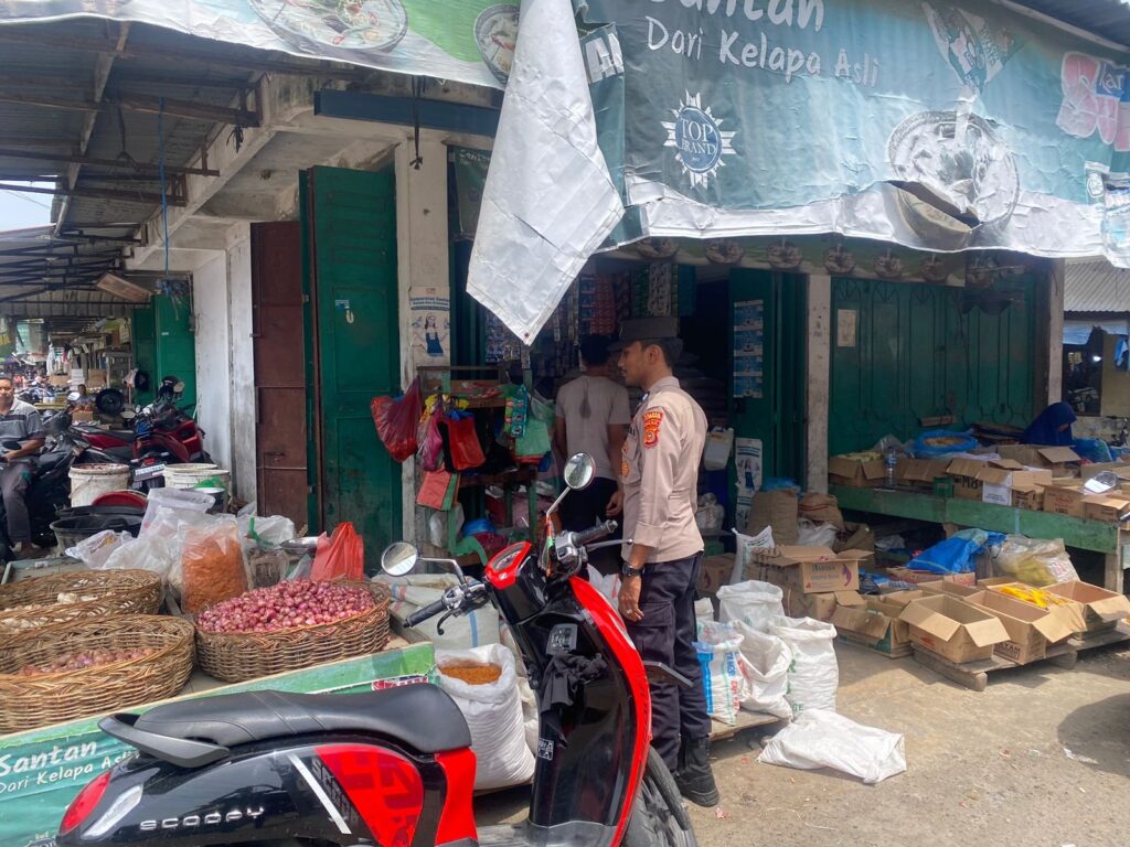 Aceh Utara – Personel Polsek Dewantara melaksanakan patroli rutin antisipasi gangguan Keamanan dan ketertiban masyarakat ( Guantibmas) dan aksi premanisme di pasar tradisional Keude Krueng Geukueh, Kecamatan Dewantara, Kab. Aceh Utara, Provinsi Aceh, Wilayah hukum Polres Lhokseumawe, selasa (24/9/2024) pagi.