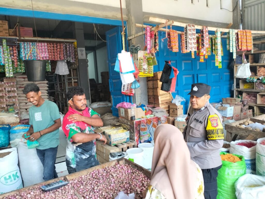 Aceh Utara – Personel Polsek Dewantara melaksanakan patroli rutin antisipasi gangguan Kamtibmas dan aksi premanisme di pasar tradisional Keude Greung Gekeuh, Kecamatan Dewantara, Kab. Aceh Utara, Provinsi Aceh, Wilayah hukum Polres Lhokseumawe, senin (27/5/2024) pagi.