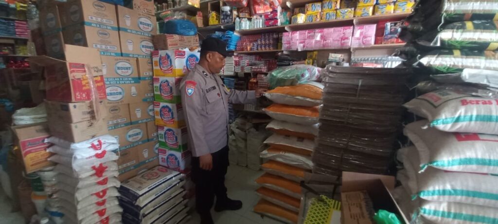 LHOKSEUMAWE – Antisipasi kelangkaan sembako, Personel Polsek Samudera memantau stok barang di sejumlah pedagang kelontong di Kecamatan Samudera, Aceh Utara, wilayah hukum Polres Lhokseumawe, kamis (22/2/2024),