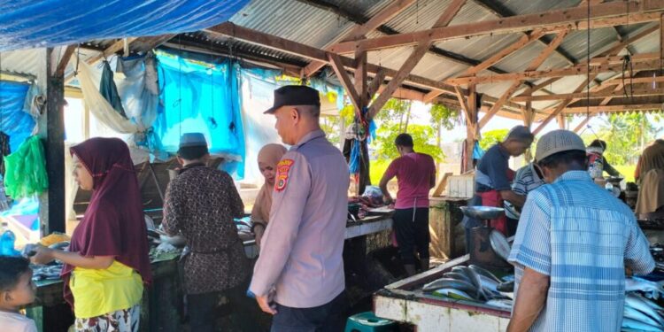 Aceh Utara – Guna mengantisipasi lonjakan harga kebutuhan pokok serta mencegah praktik kecurangan di pasar, dua personil Aiptu Akbari dan Aipda Arizal personel Polsek Muara Batu, Polres Lhokseumawe, diterjukan untuk melaksanakan patroli dan pemantauan di pasar tradisional Krueng Mane Kecamatan Muara Batu, Rabu pagi (25/6/2025).