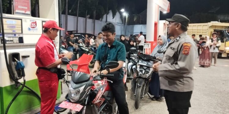 Lhokseumawe – Polres Lhokseumawe mengerahkan sejumlah personel untuk melakukan pengamanan serta pengaturan lalu lintas di sejumlah Stasiun Pengisian Bahan Bakar Umum (SPBU) yang berada di wilayah hukum Polres Lhokseumawe, Kamis (5/3/2026) malam.