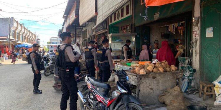 LHOKSEUMAWE – Tim Unit Reaksi Cepat (URC) Sat Samapta Polres Lhokseumawe melakukan patroli kawasan pasar Keude Punteut, Kecamatan Blang Mangat, Kota Lhokseumawe, Senin (29/5/2023) pagi.