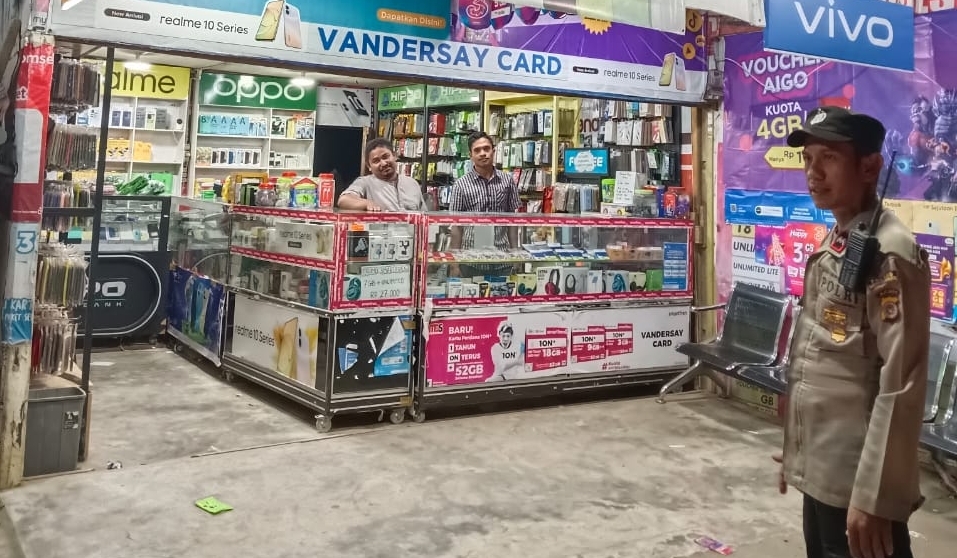 LHOKSEUMAWE – Personel Polsek Blang Mangat melaksanakan patroli rutin antisipasi gangguan Kamtibmas dengan menyasar pertokoan dan perbankan di Kecamatan Blang Mangat, Kota Lhokseumawe, Rabu (22/2/2023) malam.