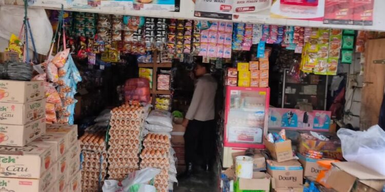 LHOKSEUMAWE – Personel Polsek Simpang Keuramat turun ke pasar tradisional dan toko kelontong di Kecamatan Simpang Keuramat, Aceh Utara, wilayah hukum Polres Lhokseumawe, kegiatan tersebut untuk mengantisipasi kelangkaan stok sembako, Sabtu (4/2/2023).