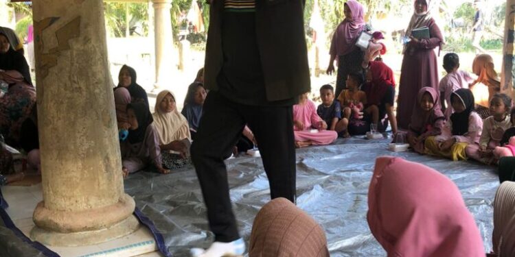 ACEH UTARA – Lembaga Aceh Orphans Center for the Children (AOCC) bersama para relawan menggelar kegiatan pendampingan psikososial atau trauma healing bagi anak-anak korban banjir bandang di Desa Lhok Reudep, Kecamatan Tanah Jambo Aye, Kabupaten Aceh Utara, Sabtu.