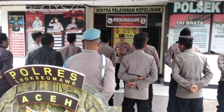 Aceh Utara – Personel Polsek Dewantara Polres Lhokseumawe melaksanakan apel pagi sebagai bentuk pembinaan disiplin dan kesiapsiagaan anggota, Selasa (14/4/2026) di Lapangan Apel Polsek Dewantara.