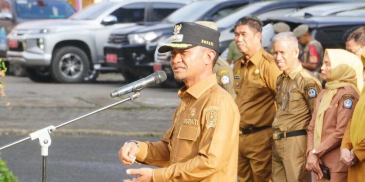 Bone: Ada hal yang berbeda dalam apel pagi Aparatur Sipil Negara Pemerintah Kabupaten Bone di pelataran Kantor Bupati Bone, Jl. Ahmad Yani, Kecamatan Tanete Riattang Barat, pada Selasa (8/4/2025) pagi. Pasalnya dalam kesempatan ini ada dua ASN yang resmi dipecat.