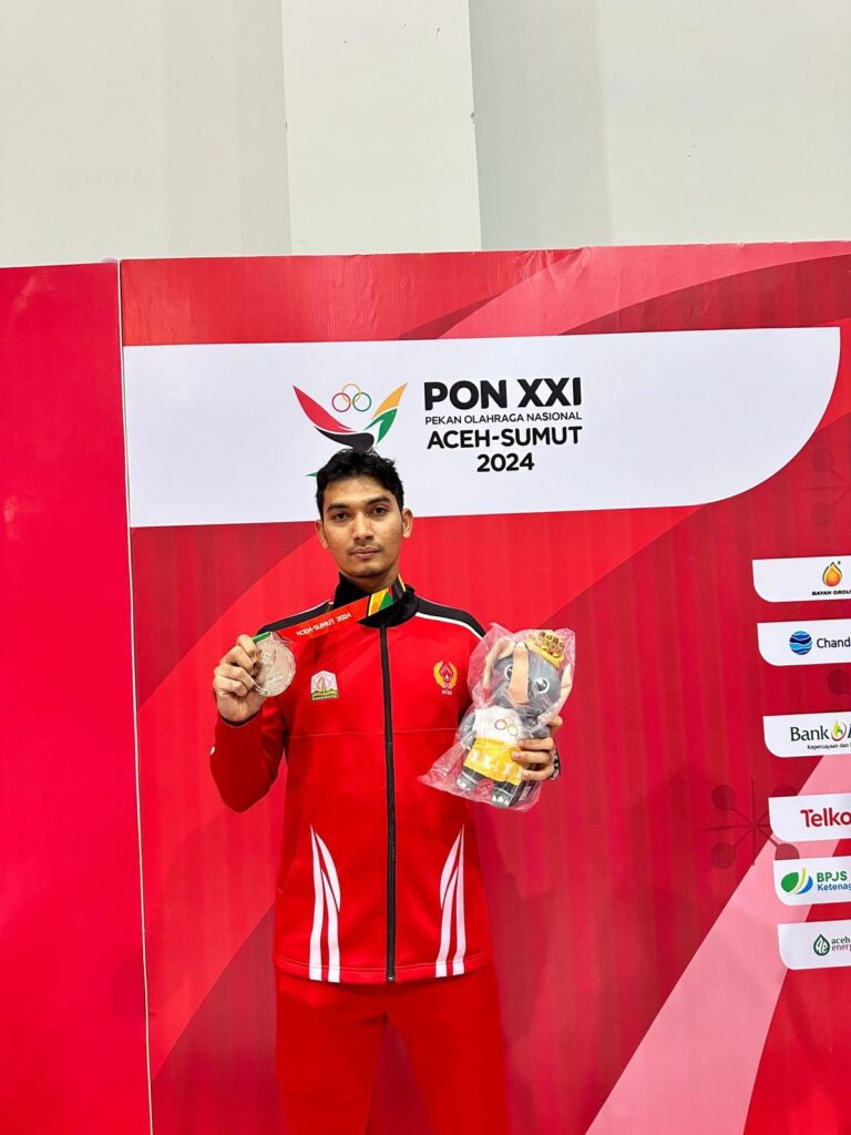 Dalam pertandingan yang berlangsung di GOR Anggar Komplek Stadion Harapan Bangsa, Banda Aceh, Senin, 16 September 2024 itu, ia dan rekan setimnya berhasil meraih medali perak.