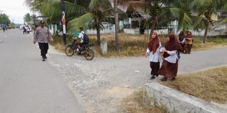 Atur Lalu Lintas, Polisi di Kuta Makmur Peduli Keselamatan Anak Sekolah
