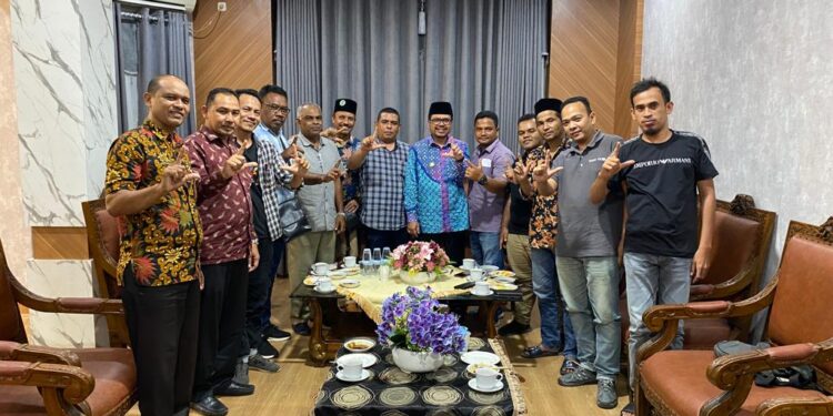 ACEH UTARA — Pengurus PWI Aceh Utara beraudiensi dengan Pj Bupati Aceh Utara, Azwardi, pertemuan tersebut berlangsung di pendopo Bupati Aceh di Lhokseumawe, Kamis (23/2/2023) malam.