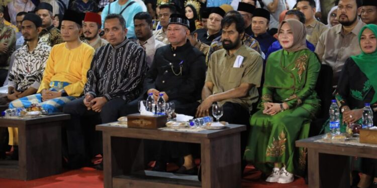 ACEH UTARA — Bupati Aceh Utara H Ismail A Jalil, SE, MM, mendampingi Gubernur Aceh H Muzakir Manaf membuka kegiatan Festival Aceh Perkusi berlangsung di pelataran Monumen Islam Samudera Pasai (Monispa) Kecamatan Samudera, Jumat malam, 22 Agustus 2025.