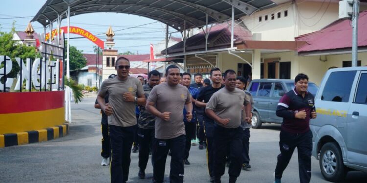 Lhokseumawe – Sejumlah personel Polres Lhokseumawe yang terdata mengalami kelebihan berat badan kini mengikuti program khusus pembakaran lemak melalui kegiatan lari dan jalan santai di halaman Mapolres Lhokseumawe, senin siang (7/7/2025).