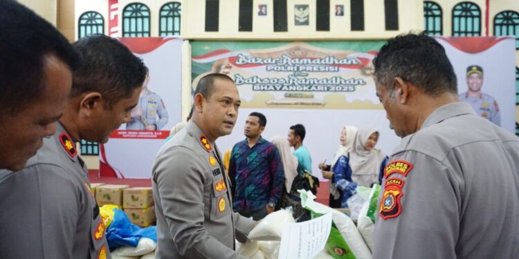 Lhokseumawe – Antusiasme masyarakat begitu tinggi dalam kegiatan Bazar Ramadhan Polri Presisi yang digelar Polres Lhokseumawe di gedung serbaguna Wirasatya Mapolres Lhokseumawe. Dalam waktu singkat, 300 paket sembako yang disediakan langsung habis dibeli oleh warga yang hadir di lingkungan Mapolres, Rabu (20/3/2025) sore.