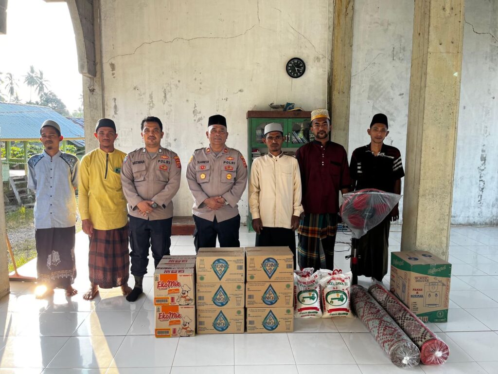 ACEH Utara – Polres Lhokseumawe berikan bantuan sembako, tikar plastik, dispenser, beras, dan kipas angin di Dayah Shirathul Huda, yang diterima oleh Pimpinan Tgk Ishak Daud di Desa Babah Krueng, Kecamatan Sawang, rabu (13/3/2024) sore.
