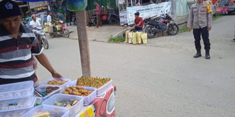 LHOKSEUMAWE – Personel Polsek Sawang mengatur lalu lintas jelang waktu berbuka puasa di kawasan Keude Sawang, Aceh Utara, wilayah hukum Polres Lhokseumawe, Selasa (4/4/2023), kegiatan ini guna memberi kenyamanan kepada masyarakat di sore hari.