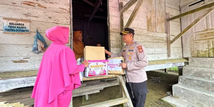 LHOKSEUMAWE – Kapolres Lhokseumawe, AKBP Henki Ismanto, SIK bersama ketua Bhayangkari, Ny Resti Henki Ismanto menyerahkan bantuan sosial kepada warga kurang mampu di Kecamatan Simpang Keuramat dan Samudera, Aceh Utara, wilayah hukum Polres Lhokseumawe, Kamis (26/1/2023).