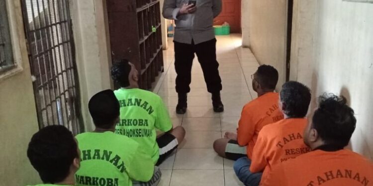 Lhokseumawe – Personil Sat Tahti Polres Lhokseumawe kembali melaksanakan kegiatan rutin bimbingan rohani kepada para tahanan di ruang tahanan Polres Lhokseumawe, Jumat (22/11/2024) pagi.