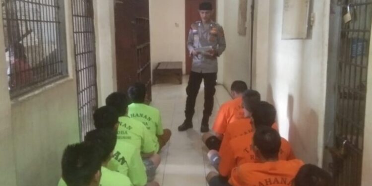 LHOKSEUMAWE – Personel Sat Tahti Polres Lhokseumawe memberikan bimbingan rohani dan mental (Binrohtal) kepada para tahanan di rutan Mapolres Lhokseumawe, dalam kegiatan ini personel meminta para tahanan agar menjaga shalat lima waktu, Jumat (9/2/2024).