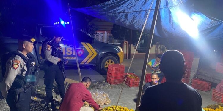 Lhokseumawe - Personel Polsek Dewantara, jajaran Polres Lhokseumawe, melaksanakan patroli malam dalam rangka mengantisipasi gangguan keamanan dan ketertiban masyarakat (kamtibmas)...