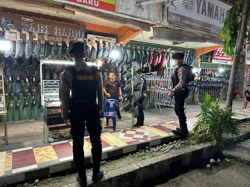 LHOKSEUMAWE – Tim Unit Reaksi Cepat (URC) Sat Samapta Polres Lhokseumawe melakukan patroli nyalakan lampu biru (blue light patrol), Sabtu (17/6/2023) malam, dalam kegiatan tersebut personel menyampaikan pesan Kamtibmas kepada pedagang di Kota Lhokseumawe.