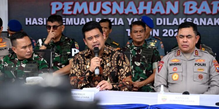 MEDAN – Gubernur Sumatera Utara (Sumut) Muhammad Bobby Afif Nasution menyampaikan apresiasi kepada Polda Sumut dan Kodam I/BB yang aktif menyelesaikan penyakit masyarakat, khususnya judi dan penyebaran Narkoba. Judi dan Narkoba, menurutnya, sudah sangat meresahkan yang menyebabkan kerugian besar di tengah masarakat.
