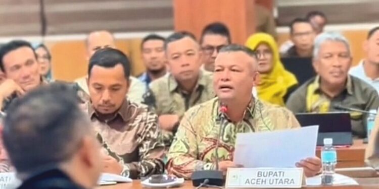 “Di Aceh Utara yang terdampak sebanyak 696 desa. Tetapi kalau kita lihat TKD di tabel ini, yang terdapat bukan yang terdampak. (Justru) yang tidak terdampak yang dapat. Jadi untuk apa kami diundang, mungkin untuk dapat ya,” ujar Bupati Ayah Wa sambil disambut tepuk tangan dalam forum tersebut didampingi Pj. Sekda, Jamaluddin.