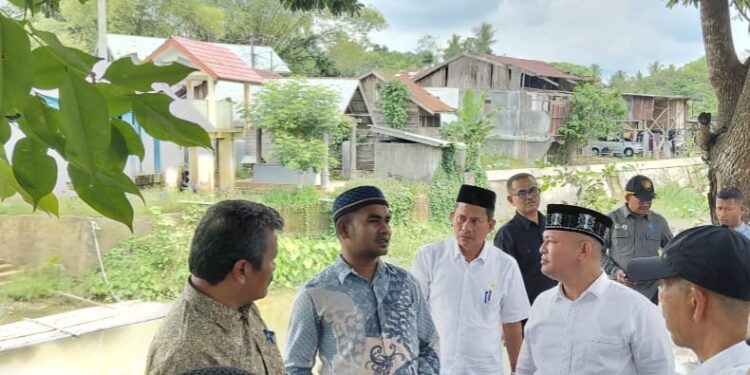 LHOKSUKON — Bupati dan Wakil Bupati Aceh Utara meninjau langsung kondisi jembatan gantung di Gampong Cot Seutui, Kecamatan Kuta Makmur, pada Kamis (8/8/2025).