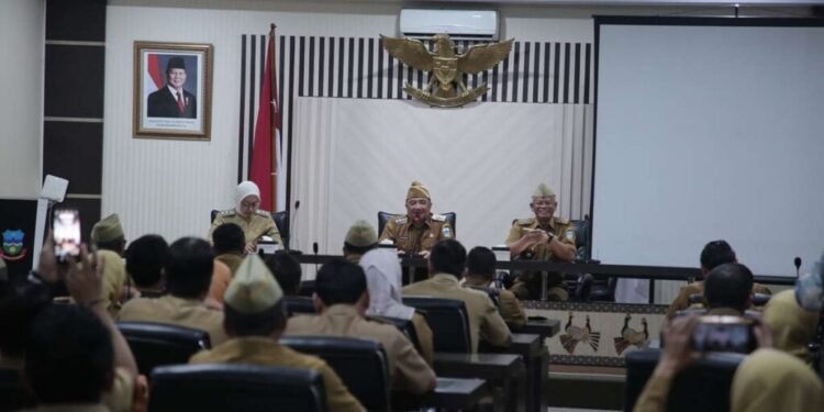 KAB. GARUT – Bupati Garut, Abdusy Syakur Amin memberikan pengarahan dan koordinasi setiap lingkup Satuan Kerja Perangkat Daerah (SKPD), Pejabat Pimpinan Tinggi Pratama (PPTP), Kepala Bagian (Kabag), dan Camat se-Kabupaten Garut, Senin (3/3/2025), di Ruang Rapat Sekretariat Daerah Kabupaten Garut.