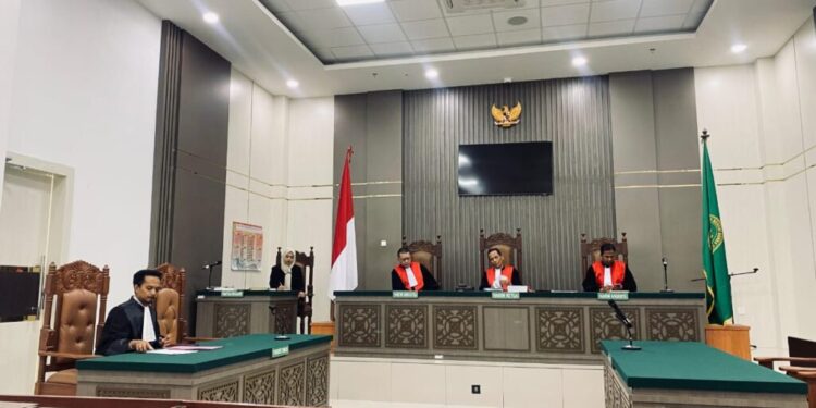 BANDA ACEH – Pengadilan Tindak Pidana Korupsi pada Pengadilan Negeri Banda Aceh menggelar sidang perdana pembacaan dakwaan perkara dugaan korupsi dana desa dengan terdakwa Fadlonnur bin Muhammad Thaeb, Geuchik Gampong Deng, Kecamatan Tanah Luas, Kabupaten Aceh Utara, Kamis (18/12/2025). Persidangan dilaksanakan secara in absentia lantaran terdakwa hingga kini masih berstatus Daftar Pencarian Orang (DPO).
