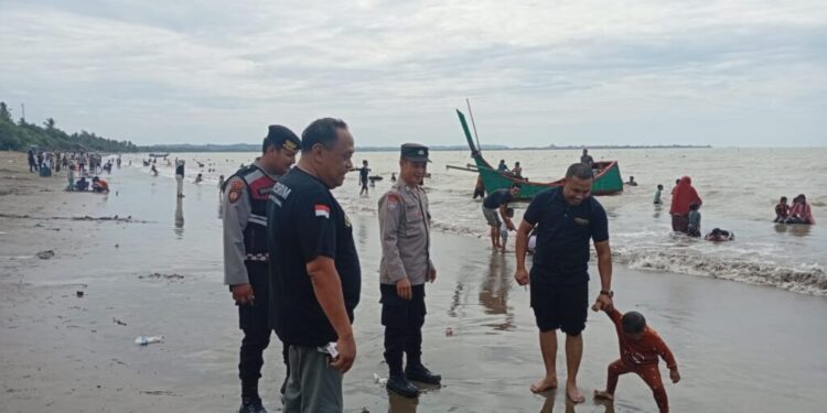 Aceh Utara – Personel Polres Lhokseumawe melaksanakan kegiatan pengamanan dan pengawasan untuk memastikan keamanan dan kenyamanan masyarakat yang berwisata di lokasi wisata Pantai Lancok, Desa Lancok, Kecamatan Syamtalira Bayu, Kabupaten Aceh Utara, Minggu (8/6/2025).