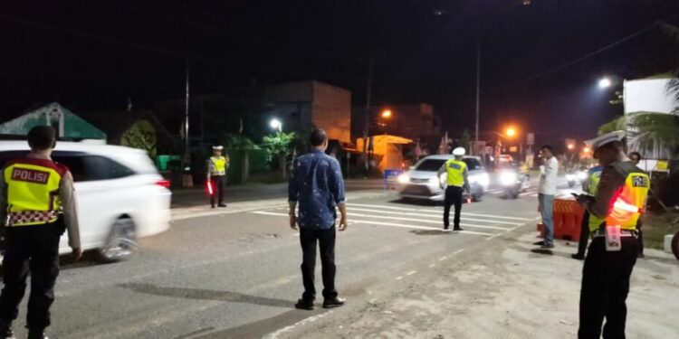 LHOKSEUMAWE – Personel Polres Lhokseumawe menggelar razia di jalan lintas Medan – Banda Aceh di depan terminal bus, Desa Meunasah Mee, Kandang, Kecamatan Muara Dua, Kota Lhokseumawe, Kamis (18/1/2024) malam, kegiatan tersebut guna mencegah gangguan Kamtibmas menjelang Pemilu Serentak 2024.