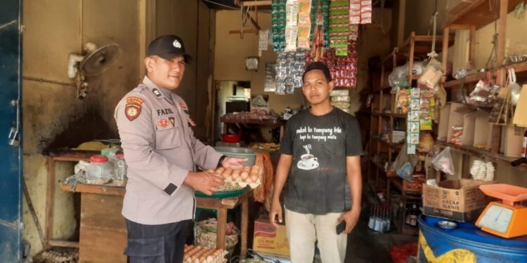 LHOKSEUMAWE – Personel Polsek Nisam melakukan monitoring stok sembako di pasar tradisional di Kecamatan Nisam, Aceh Utara, wilayah hukum Polres Lhokseumawe, Jumat (26/5/2023).