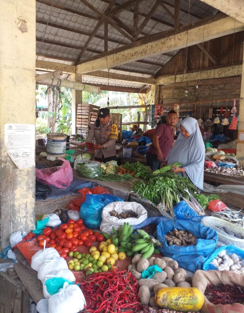LHOKSEUMAWE – Personel Polsek Nisam melaksanakan patroli cegah gangguan Kamtibmas dan pengecekan stok sembako di pasar Keude Amplah, Meunasah Meucat, Nisam, Aceh Utara, wilayah hukum Polres Lhokseumawe, rabu (1/5/2024) pagi.