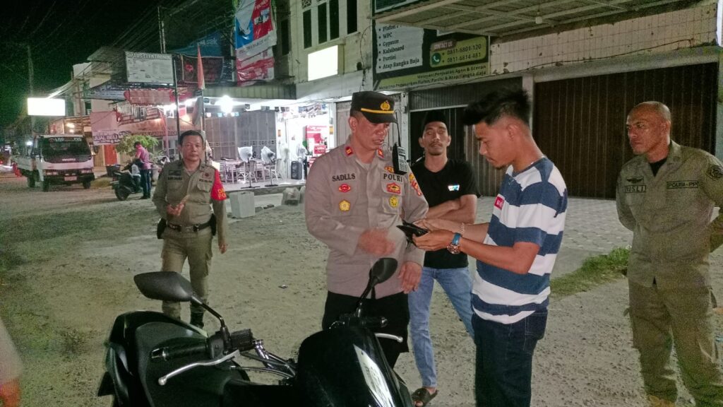 LHOKSEUMAWE – Personel Polres Lhokseumawe dan Satpol PP menggelar razia di bundaran Pos Lantas, Cunda dan menempel seruan bersama Forkompinda Kota Lhokseumawe, Kamis (8/2/2024) malam.